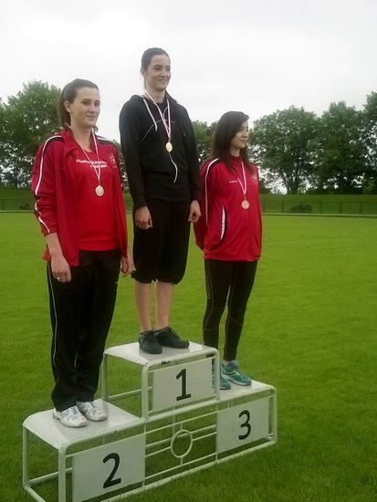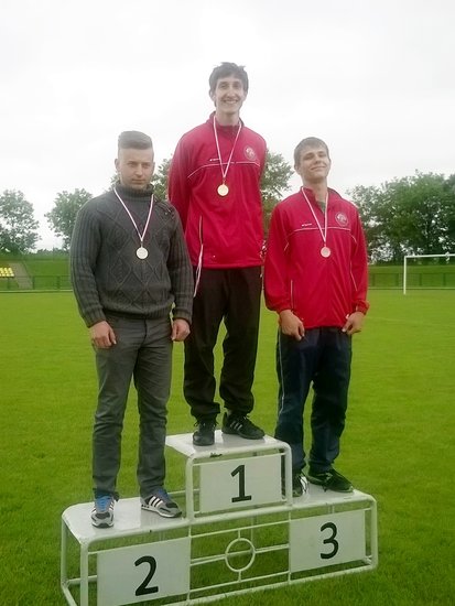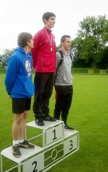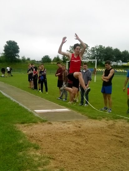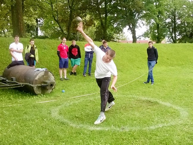 Trzecią konkurencją rozgrywaną w tym samym czasie było pchnięcie kulą dziewcząt. Brało w niej udział trzynaście zawodniczek. Finał rozegrał się miedzy uczennicami ZSP Staszic Nakło i licealistkami z Szubina. Zwycięsko wyszła z tej rywalizacji uczennica ZSP Staszic, drugie i trzecie miejsce należało do zawodniczek z LO Szubin: II m zajęła Anna Mika a III m Monika Frontczak. Zaraz po zakończeniu zawodów kulomiotek rozpoczęły się zawody kulomiotów, w której startował aż 22 zawodników. Licealiści szubińskiego LO w tej konkurencji nie osiągali wyników, które dałyby im miejsce na podium. Jakub Kwaśniewski pchną 6 kg kulę na odległość 9, 9 m, ta odległość dała Jakubowi 6 miejsce. Drugi uczeń Wyspiańskiego Piotr Zmudziński z wynikiem 7, 29 m uplasował się w drugiej dziesiątce. Po zakończeniu rywalizacji uczennic na 100 m dziewczyny przeszły na skocznię w dal. A chłopcy ze skoczni przenieśli się na bieżnię i zaczęli eliminacje. Skok w dal dziewcząt też zdominowały licealistki z Wyspiańskiego. Walka była bardzo zacięta o pierwszym i drugim miejscu zdecydował tylko jeden centymetr. Pierwsza Monika Frontczak wynikiem 5, 10 m. wyprzedziła drugą Karolinę Krajewską z wynikiem 5, 09 m, trzecia Martyna Kowalewska wynikiem 4, 75 m zajęła trzecie miejsce. W zawodach sprinterskich chłopców brało udział 19 uczniów. Uczniowie z LO Szubin Szymon Wilczyński i Bartosz Świątkowski w swoich przedbiegach zajmowali pierwsze miejsca. W finale podzielił ich tylko uczeń ZSŻŚ z Nakła. Pierwsze miejsce - Szymon Wilczyński 11, 4 s drugi zawodni 11, 6 s. a Bartosz Świątkowski 11, 8 s. zajął trzecie miejsce.