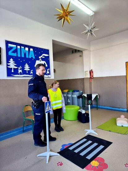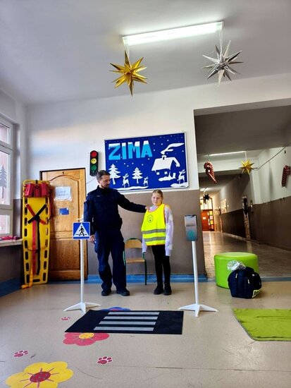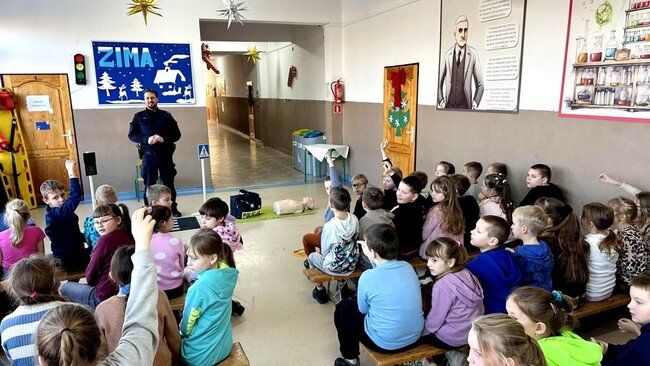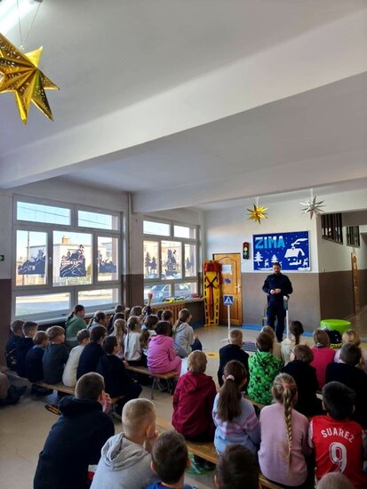 Uczniów Szkoły Podstawowej# im. Jana Czochralskiego w Kcyni odwiedził mł.asp.Jakub Biegała. Funkcjonariusz z kcyńskiego Komisariatu przeprowadził zajęcia dotyczące bezpieczeństwa podczas zbliżających się ferii.