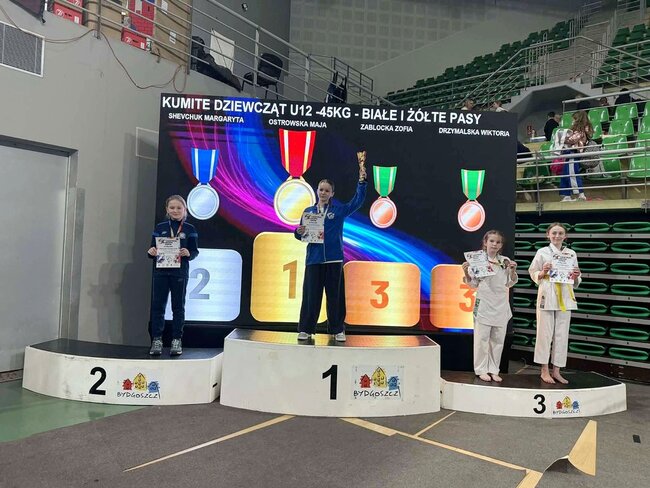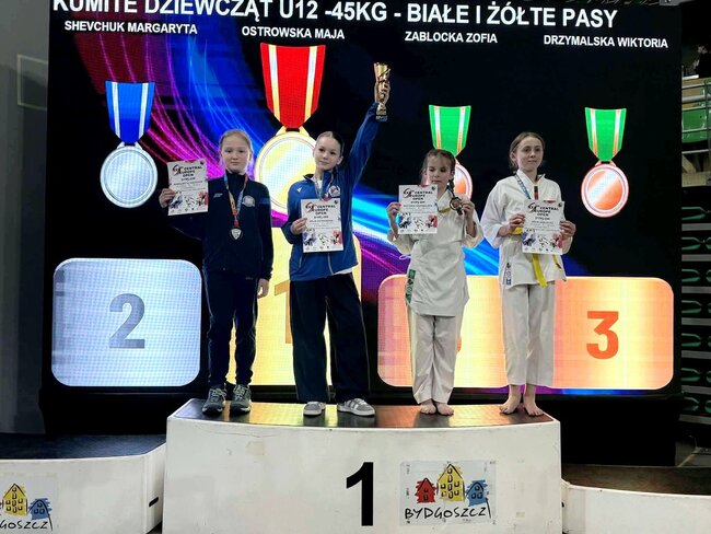 Margaryta Shevchuk- kumite indywidualne dziewcząt U12 (-45 kg) białe i żółte pasy,