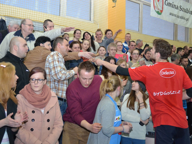 Mecz był poprzedzony prawie dwugodzinnym treningiem bydgoszczan. Szubińska hala takich tłumów jeszcze chyba nie gościła. Zainteresowanie imprezą było ogromne. Trudno się dziwić. Rzadko, żeby nie powiedzieć wcale, sportowcy takiego formatu pojawiają się w Grodzie Pelikana.