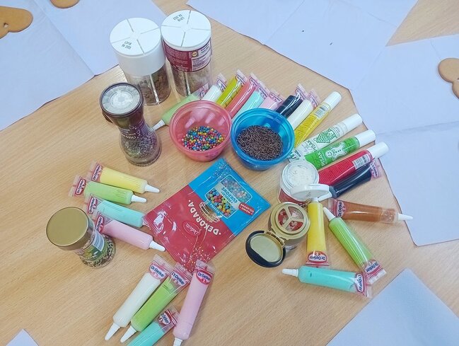 Dzieci wykonały pracę plastyczną oraz ozdabiały piernikowe serce. Tego dnia stoliki zapełniły się miseczkami z lukrem, kolorowymi posypkami, pisakami cukrowymi i oczywiście, pierniczkami. Każdy wyglądał inaczej, był wyjątkowy i niepowtarzalny. Dekorowanie pierników to tradycja, która nie tylko wprowadza dzieci w nastrój zbliżających się świąt, ale również rozwija ich kreatywność i zdolności manualne. Po udekorowaniu, niektóre pierniki zniknęły.....