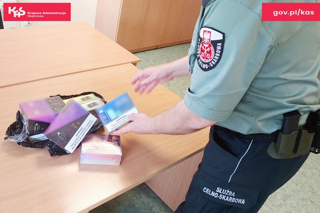 W przesyłkach kurierskich na terenie jednej z podbydgoskich sortowni, mundurowi znaleźli 283 szt. jednorazowych papierosów elektronicznych oraz 3 kg tytoniu bez wymaganych znaków akcyzy. Gdyby zabezpieczone towary trafiły do sprzedaży, budżet państwa straciłby ponad 18 tys. zł z tytułu niezapłaconego podatku akcyzowego.