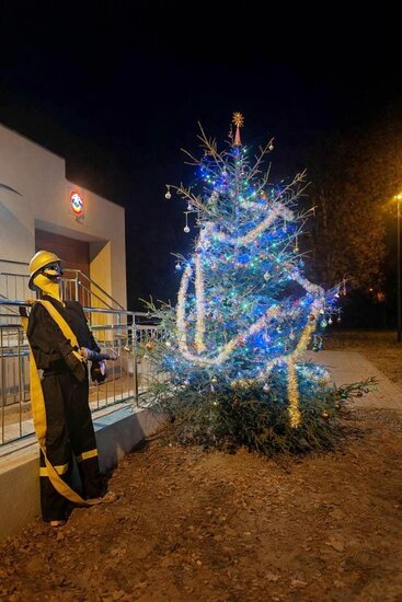 Do Mariki. Ta choinka to nie zasługa burmistrza. Pomysłodawcą tej imprezy był naczelnik jednostki OSP Dobieszewo Pan Piotr.