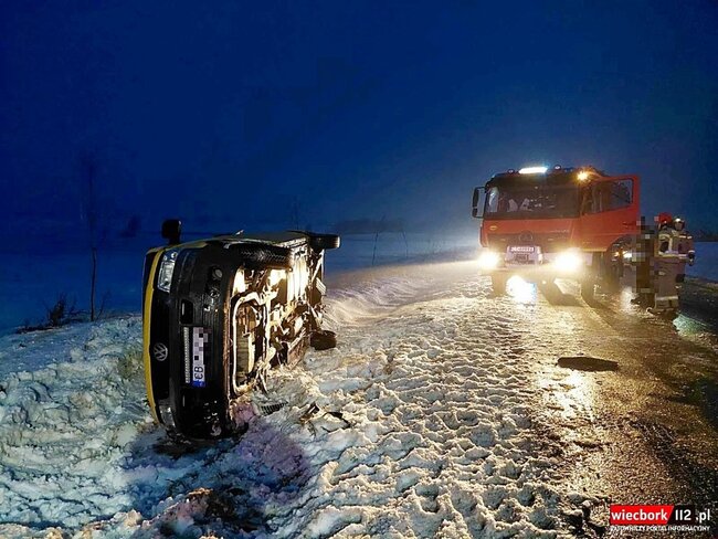 Na miejsce zadysponowano zastęp z Jednostki Ratowniczo-Gaśniczej w Sępólnie Krajeńskim oraz zastęp z Ochotniczej Straży Pożarnej w Więcborku. Na miejscu okazało się, że przed miejscowością Zabartowo od strony Wiela bus marki VW dachował w przydrożnym rowie. Pojazdem podróżował sam kierowca, któremu na szczęście nic się nie stało.