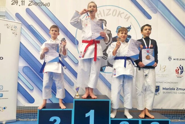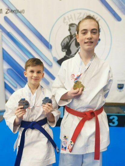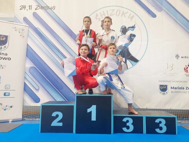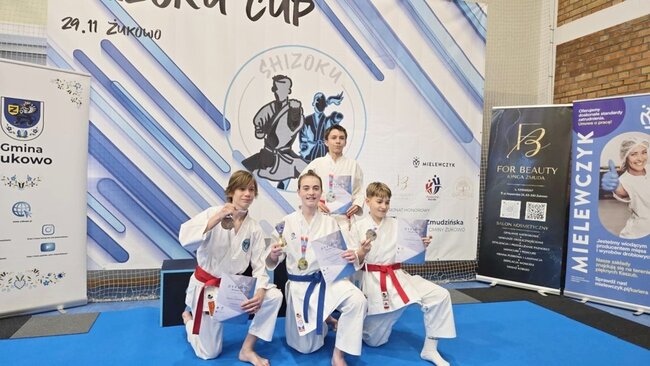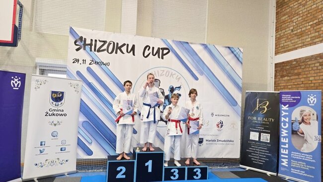 Dwóch zawodników# Klubu Karate Stowarzyszenie Sportowe Yamabushi - Mateusz Ostrowski i Jan Kalinowski - zdobywa 7 medali (3 złote, 2 srebrne, 2 brązowe) podczas SHIZOKU CUP, Liga Super Karate, które się w dniu 29 listopada 2025 r. w Żukowie