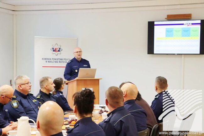 Na zakończenie odprawy głos zabrał Starosta Nakielski Krzysztof Błoński, który złożył funkcjonariuszom gratulacje oraz podziękował za ich zaangażowanie i wkład w poprawę bezpieczeństwa mieszkańców powiatu nakielskiego. Spotkanie było okazją do podsumowań, ale także do wyznaczenia dalszych kierunków współpracy pomiędzy Policją a samorządem lokalnym.