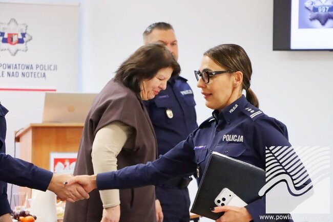 Następnie głos zabrała insp. Małgorzata Jorka - Zastępca Komendanta Wojewódzkiego Policji w Bydgoszczy, która pozytywnie oceniła pracę policjantów powiatu nakielskiego w 2025 roku. W swoim wystąpieniu wyznaczyła priorytety Policji na 2026 rok, zwracając szczególną uwagę na dalsze podnoszenie poziomu bezpieczeństwa oraz efektywność działań.