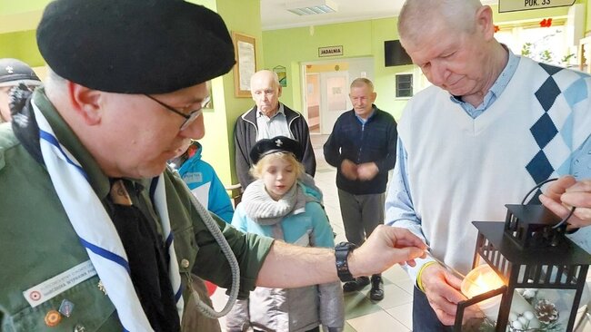 17 Gromada Zuchów oraz 18 Drużyna Harcerska "Zawiszacy" przekazała na ręce przewodniczącego Rady Mieszkańców płomień nadziei z mottem przewodnim na nadchodzące święta: "Pielęgnuj dobro w sobie".