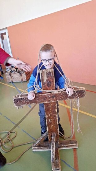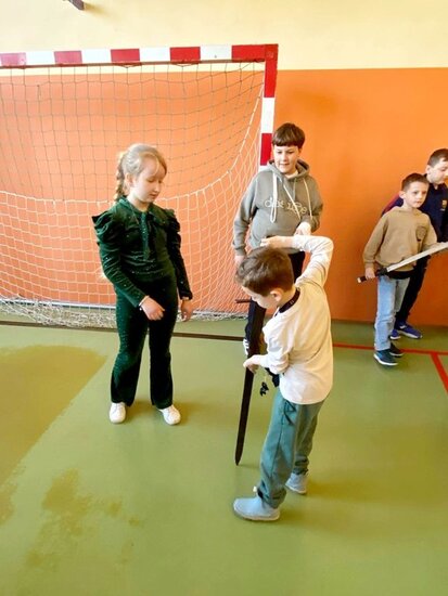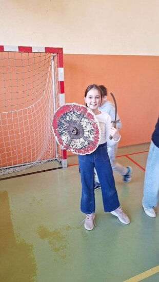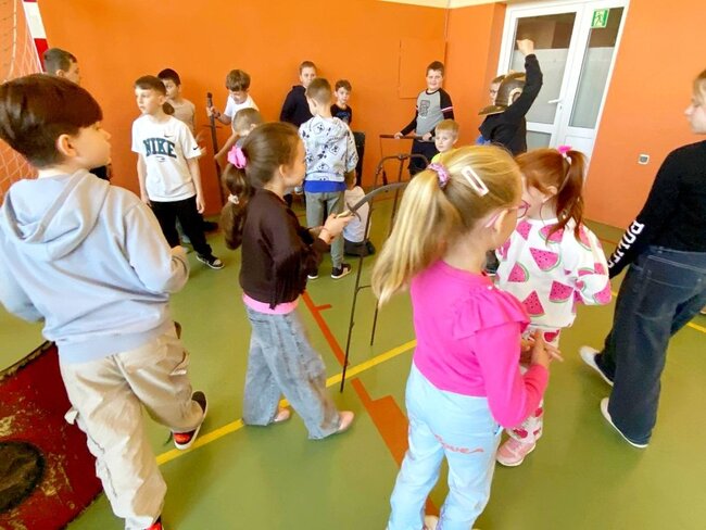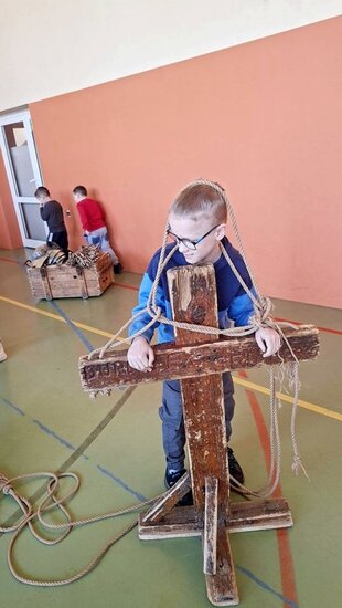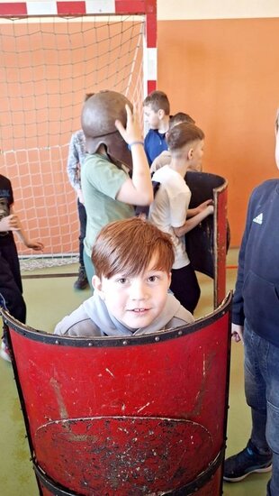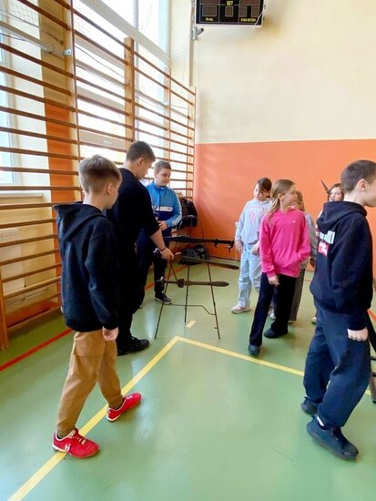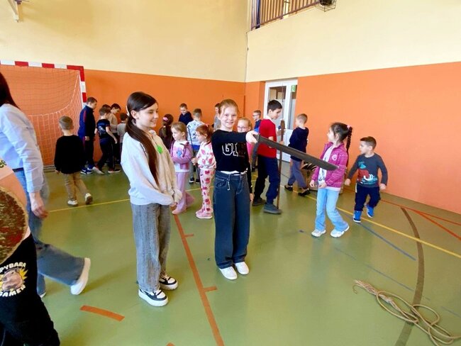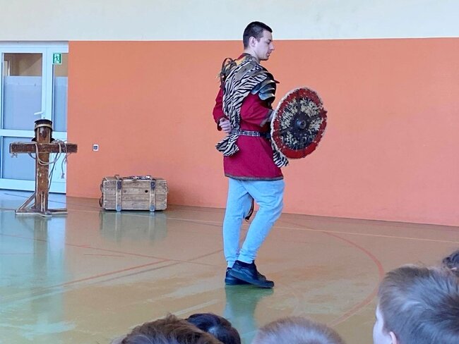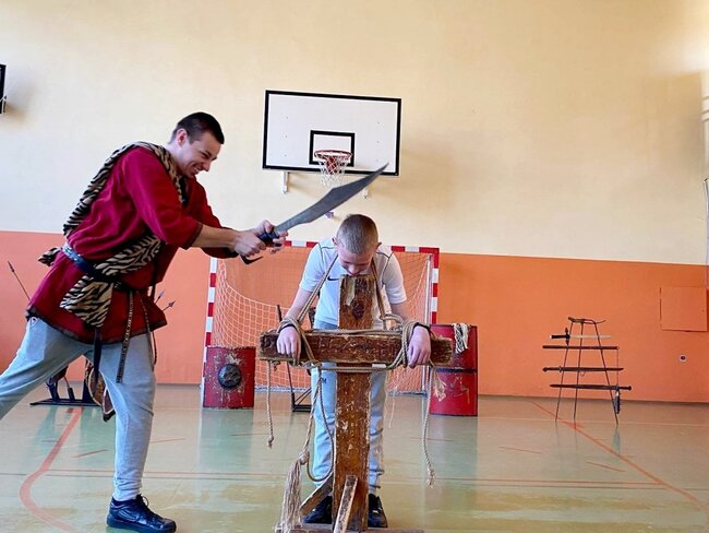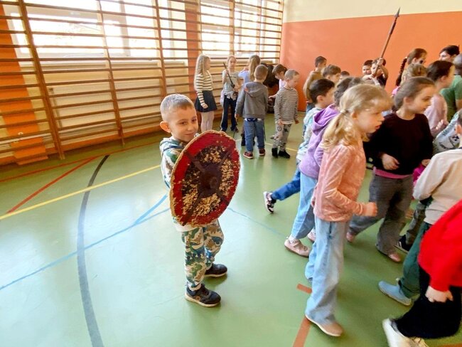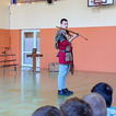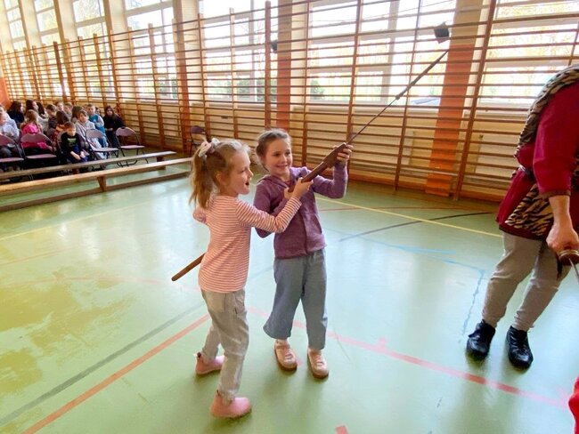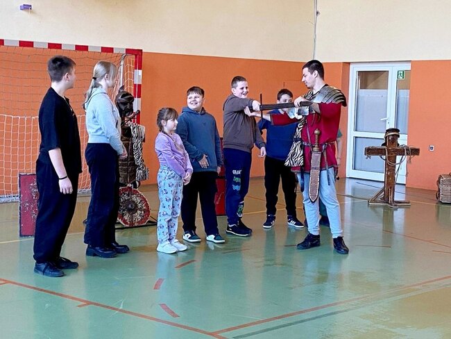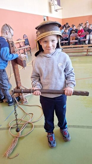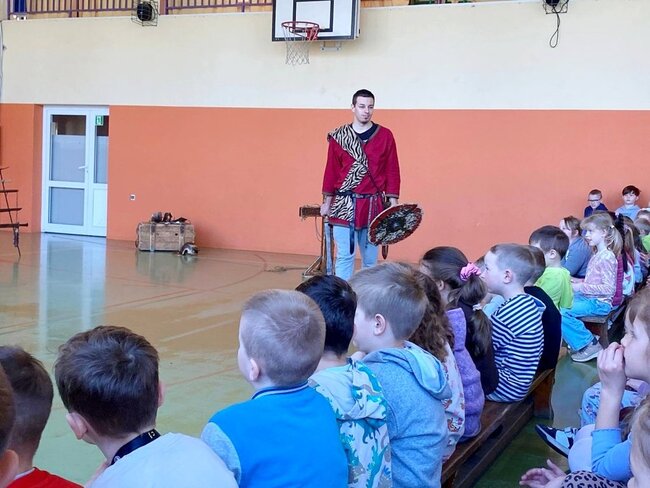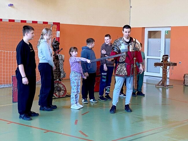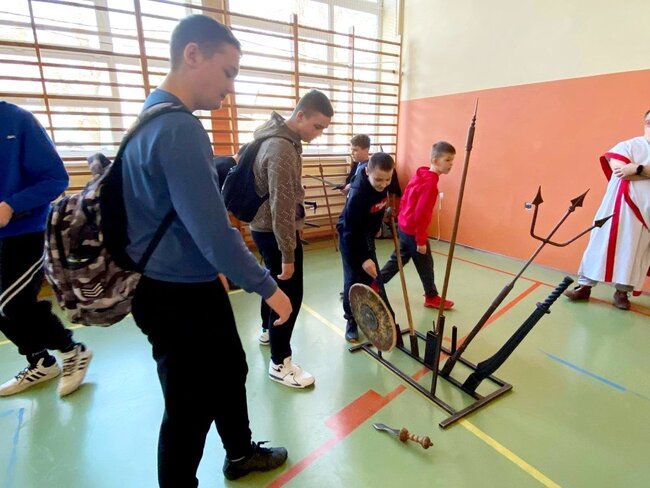 Pokaz, który był żywą lekcją historii cieszył się dużym zainteresowaniem ze strony uczniów. Dzieci mogły również przymierzyć elementy uzbrojenia, z bliska przyjrzeć się zgromadzonym rekwizytom i aktywnie włączyć się w pokaz.
