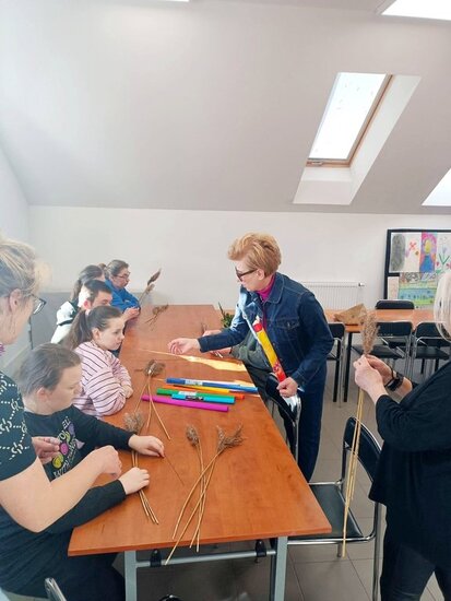 Podczas spotkania uczestnicy mieli okazję poznać dawne techniki zdobienia oraz samodzielnie przygotować kolorowe palmy z naturalnych materiałów. Warsztaty były nie tylko okazją do rozwijania zdolności manualnych, ale także do poznawania lokalnej kultury i tradycji wielkanocnych.