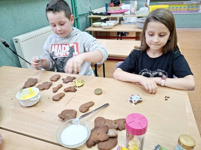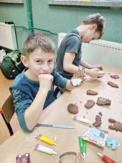 Wspólne pieczenie pierników. Uczniowie w akcji