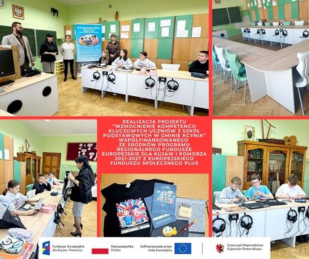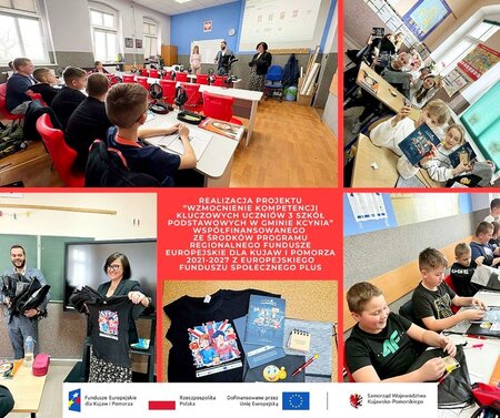 Projekt pn. WZMOCNIENIE KOMPETENCJI KLUCZOWYCH UCZNIÓW 3 SZKÓŁ PODSTAWOWYCH W GMINIE KCYNIA współfinansowany jest ze środków programu regionalnego Fundusze Europejskie dla Kujaw i Pomorza 2021-2027 z Europejskiego Funduszu Społecznego Plus w ramach Priorytetu FEKP.08 Fundusze Europejskie na wsparcie w obszarze rynku pracy, edukacji i włączenia społecznego Działania FEKP.08.12 Kształcenie ogólne BydOF-IP.