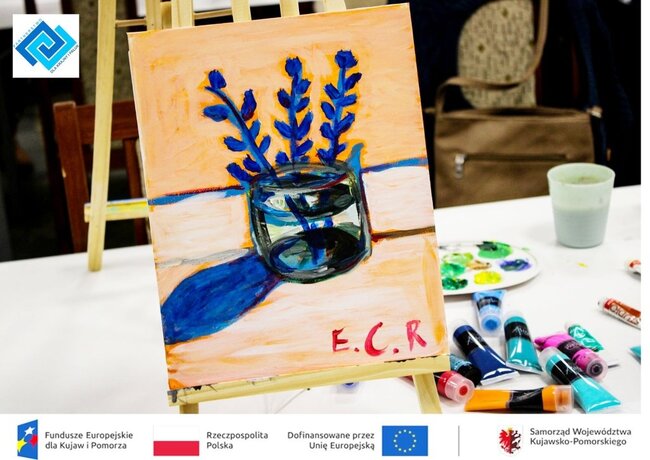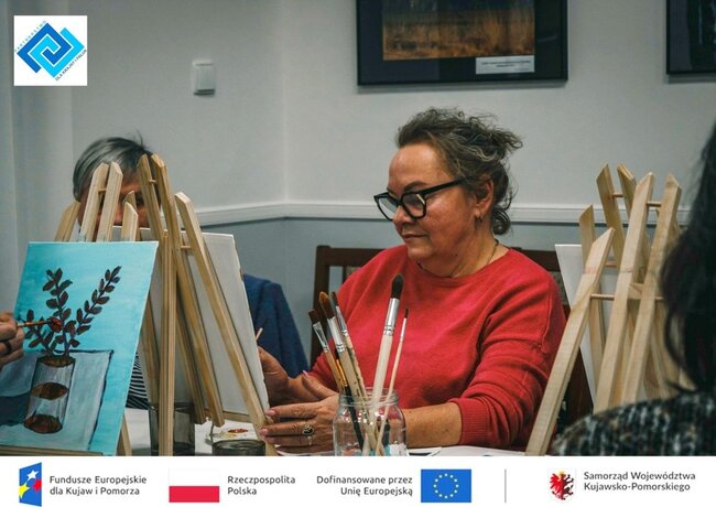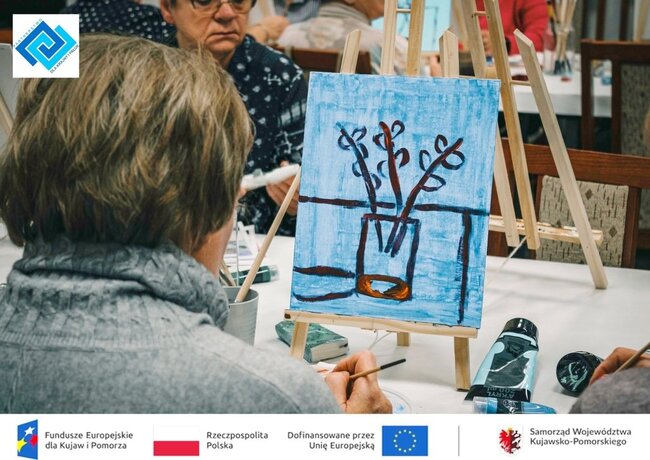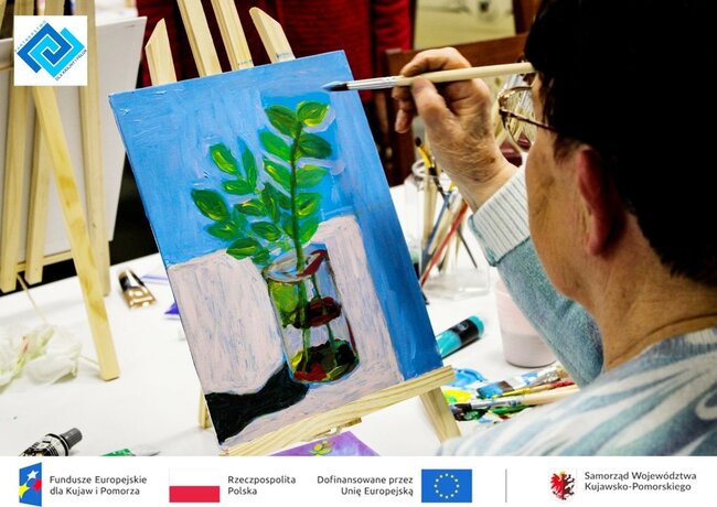 Podczas warsztatów seniorzy zmierzyli się z prawdziwym płótnem i farbami akrylowymi. Pracując na sztalugach stolikowych, pod czujnym i życzliwym okiem instruktorki, krok po kroku odkrywali tajniki malarstwa. Tematem spotkania była martwa natura, kwiaty w wazonie, które stały się inspiracją do stworzenia niezwykle barwnych i pełnych emocji prac.