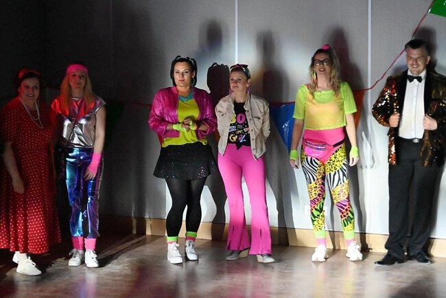 Od pierwszych minut parkiet wypełnił się dźwiękami niezapomnianych hitów sprzed lat. Syntezatorowe brzmienia, rytmy disco i popowe klasyki porwały do tańca zarówno miłośników lat 80., jak i 90. Energia udzielała się wszystkim, a dobra zabawa trwała do późnych godzin. Ogromną rolę odegrały również stroje uczestników, które sprawiły, że wydarzenie zamieniło się w prawdziwy pokaz mody sprzed kilku dekad. Falowane fryzury i odważne stylizacje idealnie dopełniały karnawałowy klimat.