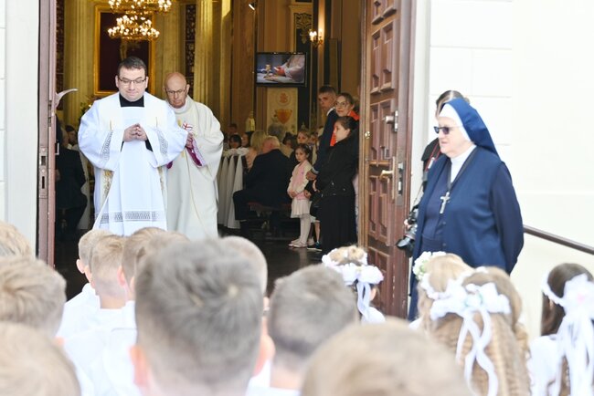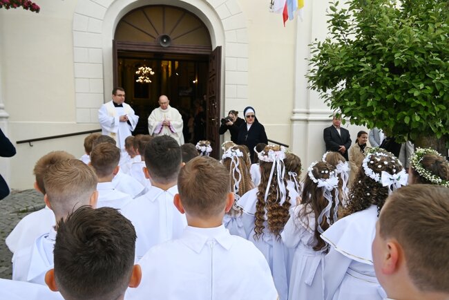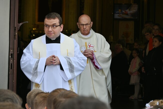 Dzieci zostały na wstępie powitane przez proboszcza kcyńskiej parafii, ks. Michała Kosteckiego, a następnie wszyscy udali się do świątyni, bo uczestniczyć w uroczystym nabożeństwie komunijnym. Tego dnia dzieci po raz pierwszy w swoim życiu przyjęły do swych serc Ciało Chrystusa.