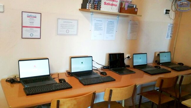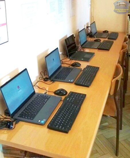 W bibliotece# Szkoły Podstawowej w Mycielewie są już dostępne nowoczesne laptopy przeglądarkowe.