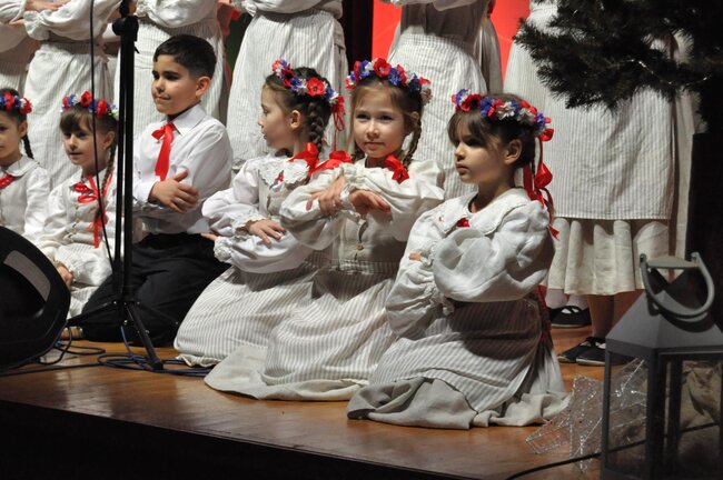 Następnie na scenę wkroczył Dziecięcy Zespół Folklorystyczny „Jabłoneczka” działający przy Gminnym Ośrodku Kultury w Sadkach pod kierunkiem Eweliny Gondek, który zaprezentował bogaty program artystyczny.