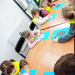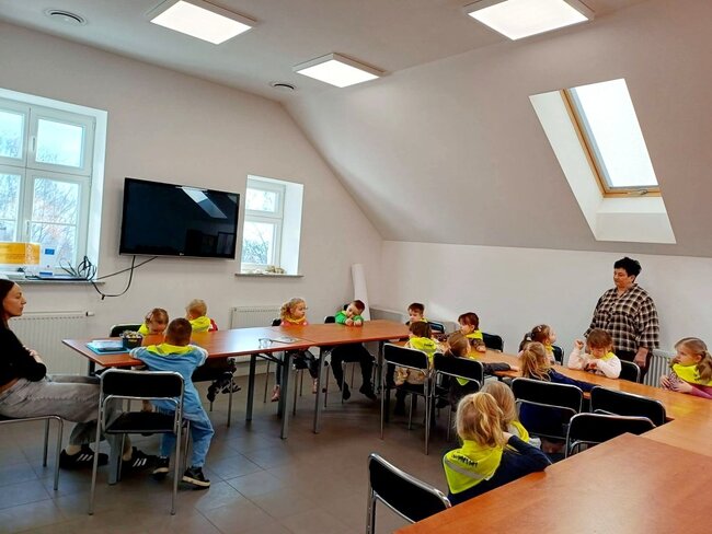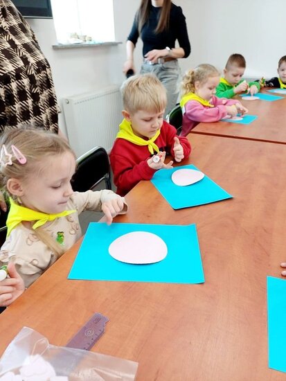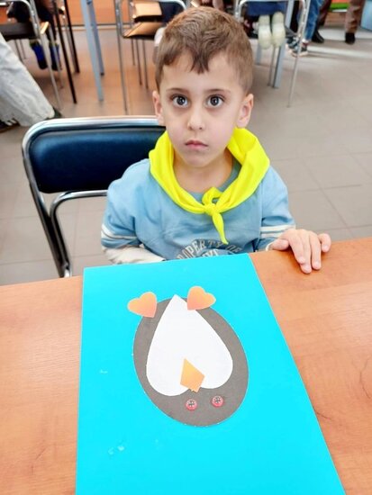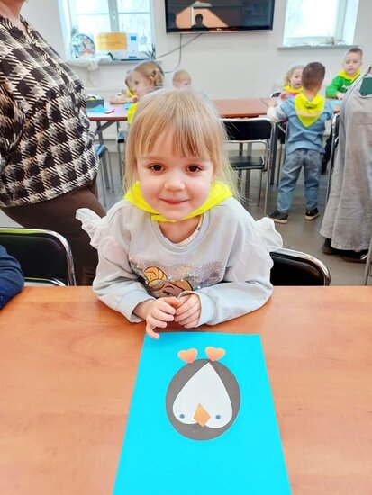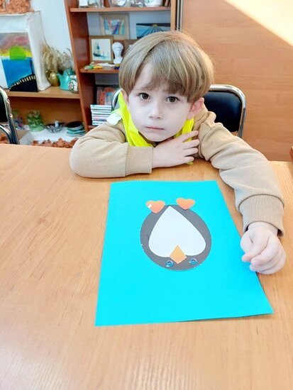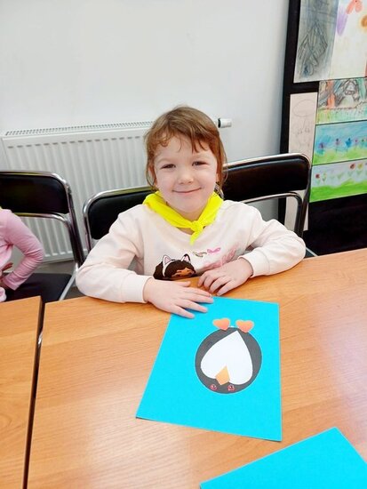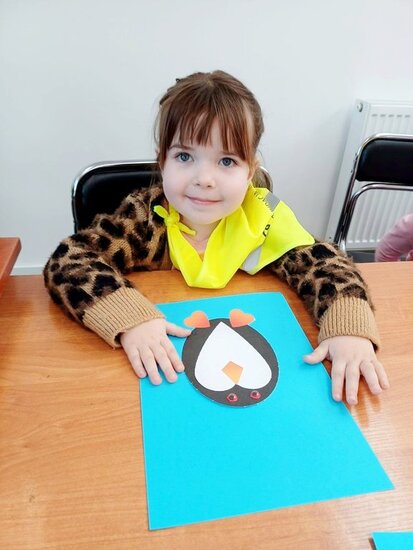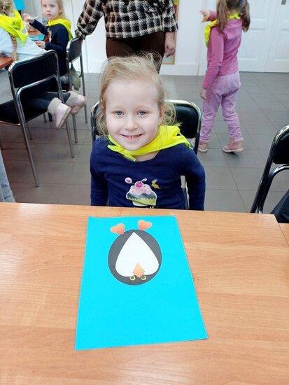 "Pszczółki" z zaciekawieniem wysłuchały opowiadania o mijającej zimie i wymieniły oznaki zbliżającej się wiosny. Następnie wyklejały obrazek pingwinka, który zabrały do przedszkola.