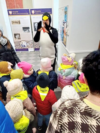 W czwartek, 26 lutego# GCKiB w Kcyni odwiedziły przedszkolaki wraz z opiekunami. Dzieci przywitał pingwinek, któremu z radością "przybijały piątkę".
