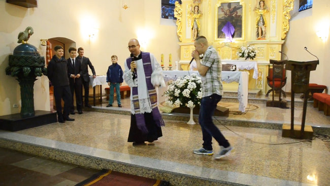 Wikariusz wystąpił wraz z wychowankiem Zakładu Poprawczego Waldkiem Sikorą podczas Sakramentu Bierzmowania, 9 kwietnia w kcyńskiej farze.