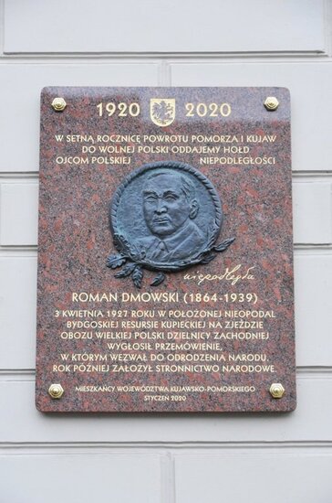 Współtwórcy Niepodległej Polski oddał hołd dyrektor Oddziału IPN w Gdańsku dr Marek Szymaniak i naczelnik delegatury IPN w Bydgoszczy Edyta Cisewska. Złożyli kwiaty pod tablicą upamiętniającą wizytę w 1927 roku Romana Dmowskiego w Bydgoszczy, która znajduje się na budynku Kujawsko-Pomorskiego Centrum Kształcenia Nauczycieli przy ulicy Jagiellońskiej 9.
