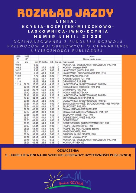 Przypominamy, że na terenie #Gminy Kcynia kursują autobusy dla mieszkańców. Realizacja połączeń możliwa jest dzięki uzyskanemu dofinansowaniu od Wojewody Kujawsko-Pomorskiego w ramach środków Funduszu Rozwoju Przewozów Autobusowych o charakterze użyteczności publicznej przy wsparciu finansowym z budżetu Gminy Kcynia.
