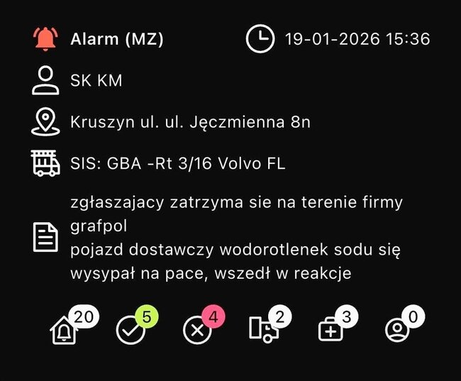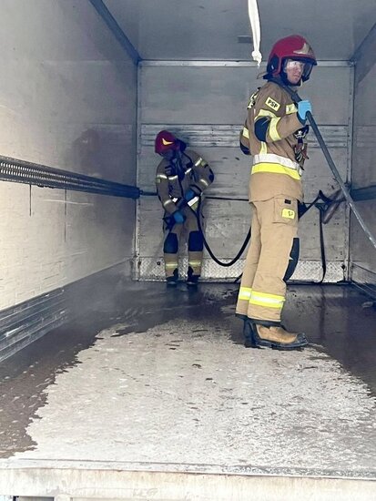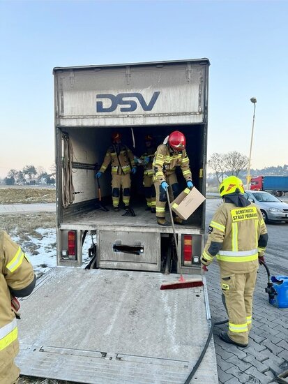 Po godzinie 15.00 doszło do rozsypania związku chemicznego. Na miejsce udały się dwa zastępy straży pożarnej: OSP Kruszyn i JRG 4 Bydgoszcz. - W przestrzeni ładunkowej samochodu ciężarowego rozsypał się związek chemiczny wodorotlenku sodu który wszedł w reakcje z wodą tworząc silnie żrący, bezbarwny ług sodowy. Po zneutralizowaniu związku oraz starannym wyczyszczeniu przestrzeni ładunkowej zakończyliśmy działania i wróciliśmy do jednostki - relacjonują strażacy z OSP Kruszyn.