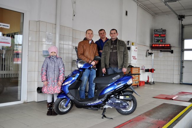 Sobota okazała się szczęśliwa dla Piotra Łuczaka (Kowalewo), to bowiem w jego ręce trafiły kluczyki do Skutera Router. Nagrody pocieszenia w postaci darmowego przeglądu otrzymali: Łukasz Kosiński (Kołaczkowo) i p. Jankowski (Dąbrówka Słupska). Nad prawidłowym przebiegiem losowania czuwali Waldemar Mikoś i Artur Szczucki.