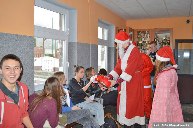 W tym roku radość była podwójna, gdyż Świętych było aż dwóch (Mateusz Biskupski oraz Filip Grzechnik). Odwiedzili oni wszystkie klasy wraz ze śniezynką (Martyna Skimina) i nagradzali grzecznych i tych mniej grzecznych uczniów cukierkami. Również z tej okazji uczniowie byli zwolnieni z odpowiedzi oraz pisania niezapowiedzianych kartkówek.