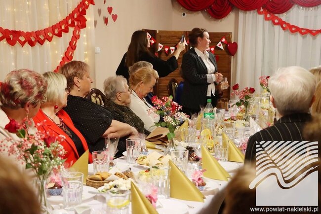 13 lutego 2026 roku odbyło się wyjątkowe# spotkanie integracyjne w klimacie walentynkowym, zorganizowane w ramach projektu „Aktywni seniorzy z powiatu nakielskiego”. Wydarzenie miało charakter otwarty - seniorki mogły zaprosić swoich bliskich, dzięki czemu wspólne świętowanie przebiegało w serdecznej, rodzinnej atmosferze. W spotkaniu uczestniczyło ponad 30 osób.