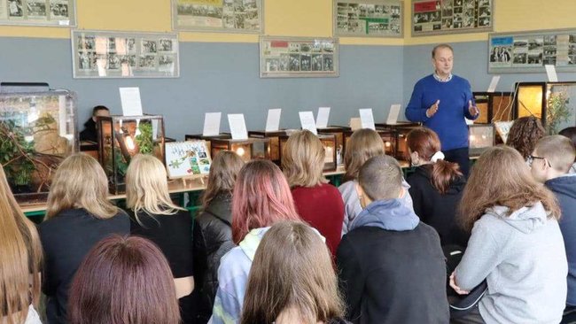 Uczniowie wraz z opiekunami uczestniczyli w ciekawej i przede wszystkim żywej !!! lekcji biologii. Podczas wykładu padało wiele ciekawostek,informacji z życia zwierząt,o których dowiedzieliśmy się pierwszy raz ! Mogliśmy podziwiać wszystkie okazy zarówno w terrariach, jak i na żywo, trzymając w ręku, na przedramieniu, czy na głowie.