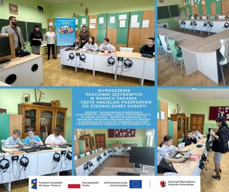 Wyposażenie pracowni jest elementem zadania pn. „Język angielski paszportem do zjednoczonej Europy”, w ramach którego odbywają się także warsztaty językowe. Zadanie to stanowi część projektu „Wzmocnienie kompetencji kluczowych uczniów 3 szkół podstawowych w Gminie Kcynia”, współfinansowanego ze środków programu regionalnego Fundusze Europejskie dla Kujaw i Pomorza 2021–2027, z Europejskiego Funduszu Społecznego Plus, w ramach Priorytetu FEKP.08 – Fundusze Europejskie na wsparcie w obszarze rynku pracy, edukacji i włączenia społecznego, Działania FEKP.08.12 – Kształcenie ogólne (BydOF-IP).