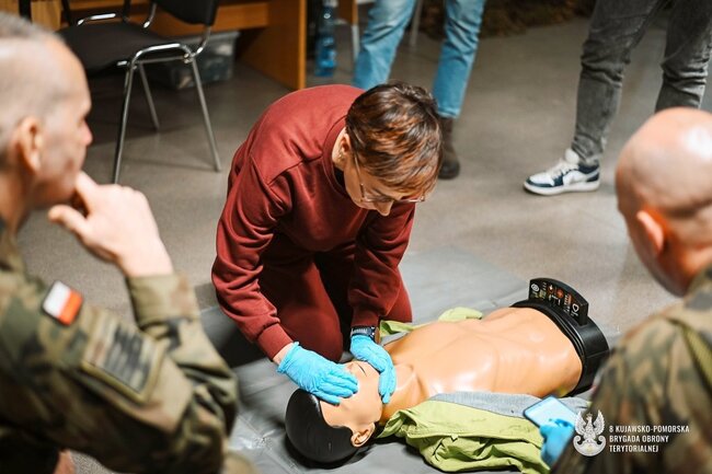 Pierwsze w #8 Kujawsko-Pomorskiej Brygady Obrony Terytorialnej (8 K-PBOT) zajęcia medyczne w ramach projektu wGotowości zakończone. Podczas szkolenia, które odbyło się 24.11.2025 r. uczestnicy zdobywali praktyczne umiejętności z zakresu ratownictwa medycznego i uczyli się działania w sytuacjach realnych zagrożeń.