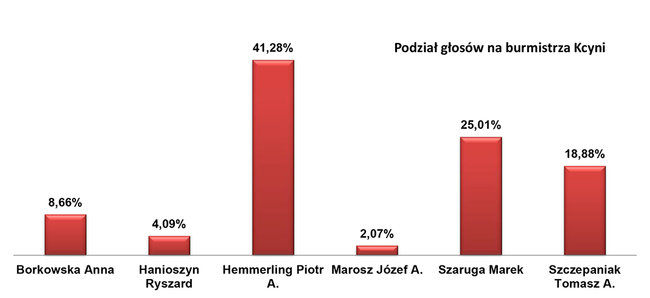 Obwody głosowania: 1. ZST Kcynia, 2. SP Kcynia , 3. GCKiB Kcynia, 4. Świetlica Malice, 5. Świetlica Kowalewko, 6. Gimnazjum Chwaliszewo, 7. ZS Dziewierzewo, 8 Świetlica Górki Zagajne, 9. SP Sipiory, 10. ZSO Kcynia, 11. Świetlica Laskownica, 12. Świetlica Grocholin 13. ZSO Kcynia