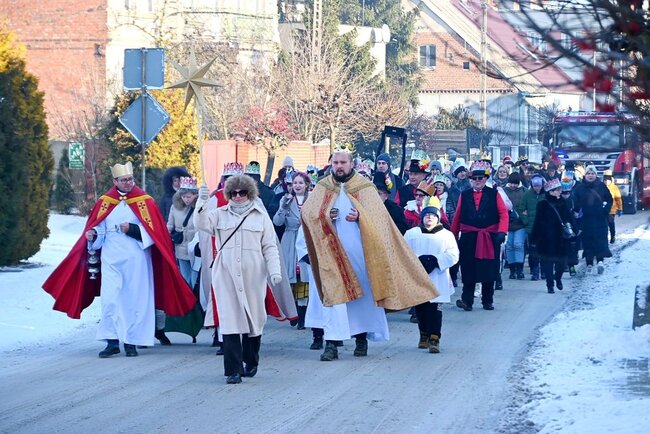 Uroczysty pochód wyruszył spod kościoła farnego około godziny 12.30. Barwny orszak, prowadzony przez Trzech Króli, wypełniły śpiew kolęd, modlitwa oraz radosna atmosfera wspólnego przeżywania święta. Uczestnicy – zarówno dorośli, jak i dzieci – z entuzjazmem włączyli się w to wyjątkowe wydarzenie, które na stałe wpisało się już w kalendarz lokalnych tradycji.