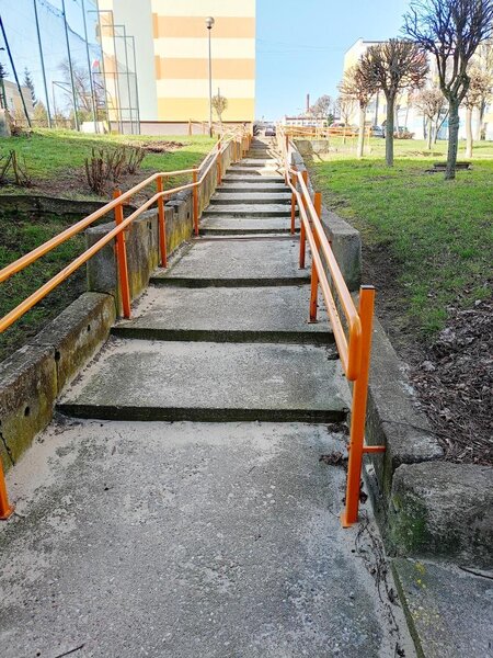 Piszę w sprawie schodów do bloku nr 5 na Osiedlu Chrobrego, gdyż nie ma tam zjazdu dla matek z wózkiem a co najgorsze dla niepełnosprawnych na wózkach. Spółdzielnia zamiast zrobić coś i pomyśleć o matkach z wózkami, to wykazuje zero zainteresowania, gdzie każdy już się do tego stosuje. Trzeba dźwigać wózek na rękach. A tyle się mówi o łamaniu barier...