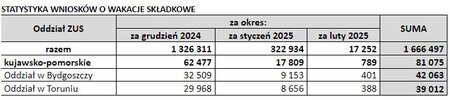 W województwie kujawsko-pomorskim złożono blisko 82 tys. wniosków. Chęć skorzystania z ulgi w grudniu 2024 roku zadeklarowało niemal 62,5 tys.  przedsiębiorców, a w styczniu liczba ta wyniosła 17,8 tys. Obecnie 789 płatników złożyło wnioski dotyczące lutego.