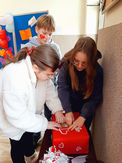 Samorząd szkolny obdarował uczniów czerwonymi lizakami, a nauczycieli walentynkami z życzeniami. Najbardziej oczekiwanym momentem walentynek było rozdanie liścików z poczty walentynkowej. Wszyscy w wspaniałym humorze wrócili na lekcje.