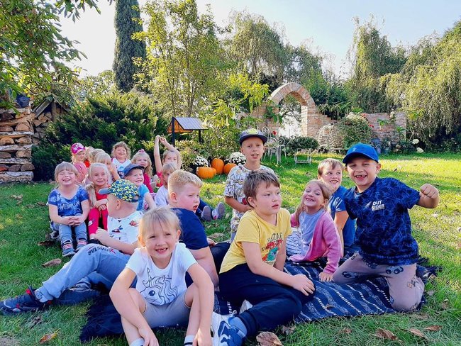 W czwartek, 28 września uczniowie klasy pierwszej oraz #nasze przedszkolaki ze Szkoły Podstawowej im. bł. Marii Karłowskiej w Dobieszewie odbyły wizytę w przepięknym ogrodzie "Sielskim zakątku" Państwa Justyny i Romana Kociołków.