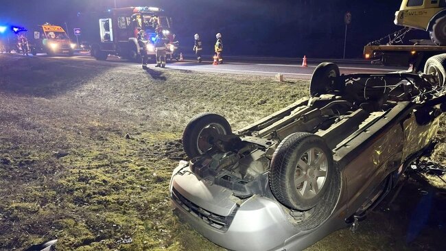 Ze względu na powagę zgłoszenia zadysponowano liczne siły i środki straży pożarnej z Bydgoszczy oraz Solca Kujawskiego. Jako pierwszy na miejsce dotarł zastęp z Solca Kujawskiego, który po przeprowadzeniu wstępnego rozpoznania potwierdził zgłoszenie. W wyniku zderzenia pojazd osobowy trafił do rowu po czym dachował. Na szczęście kierowca pojazdu osobowego opuścił samochód o własnych siłach jeszcze przed przybyciem służb ratunkowych. Na miejscu pracowały również dwa Zespoły Ratownictwa Medycznego, które udzieliły pomocy uczestnikom zdarzenia. Po przebadaniu podjęto decyzję o przetransportowaniu kierującego samochodem osobowym do szpitala na dalsze badania.