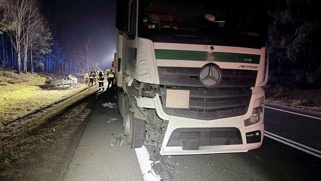 Do zdarzenia doszło# dzisiejszego wieczora. Z informacji przekazanych przez zgłaszającego wynikało, że na miejscu doszło do zderzenia pojazdu osobowego z pojazdem ciężarowym.