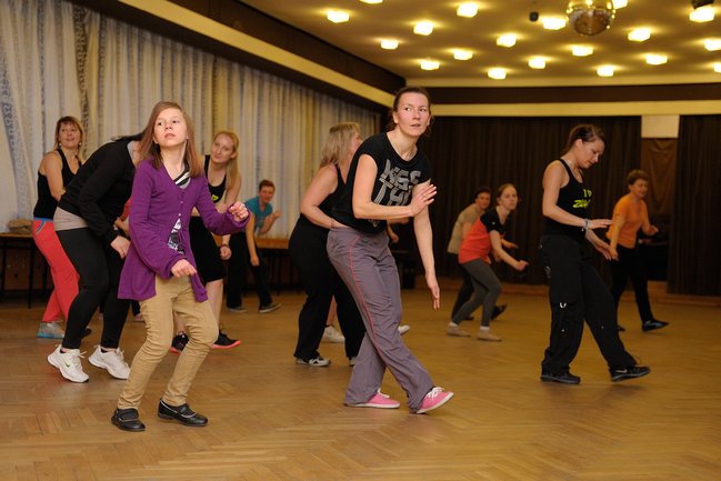 Jak się okazało Bartek nie tylko jest profesjonalistą jako piosenkarz, ale i również jako tancerz. Przy dźwiękach muzyki uczestniczki mogły spróbować swoich sił w niezwykle wyczerpujących figurach tanecznych. Mimo zmęczenia uśmiech nie schodził z ust Pań, które tuż po zajęciach mogły zdobyć autograf Bartka Wrony, jak i również pozować do wspólnej fotografii. W zorganizowaniu imprezy artyście pomogła Ksymena Masloch.