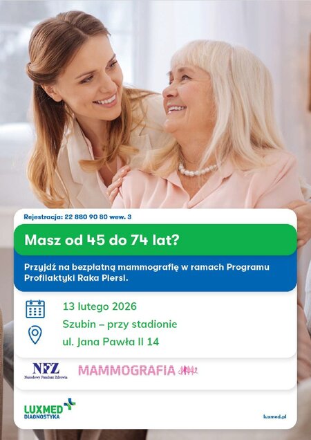 LUX MED Diagnostyka zaprasza na bezpłatne badania mammograficzne w technologii cyfrowej w ramach Programu Profilaktyki Raka Piersi finansowanego przez NFZ. W 2026 roku po raz pierwszy w badaniu będą mogły uczestniczyć Panie, które urodziły się w 1981 roku.