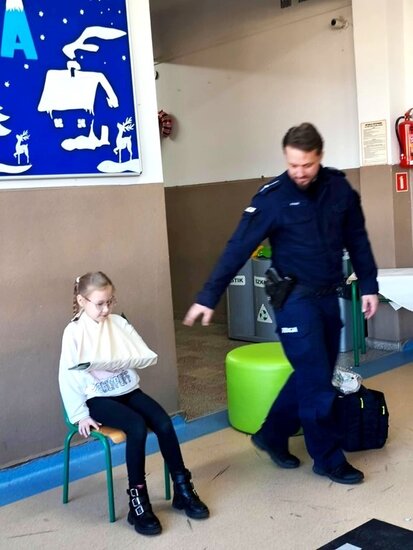Uczniów Szkoły Podstawowej# im. Jana Czochralskiego w Kcyni odwiedził mł.asp.Jakub Biegała. Funkcjonariusz z kcyńskiego Komisariatu przeprowadził zajęcia dotyczące bezpieczeństwa podczas zbliżających się ferii.