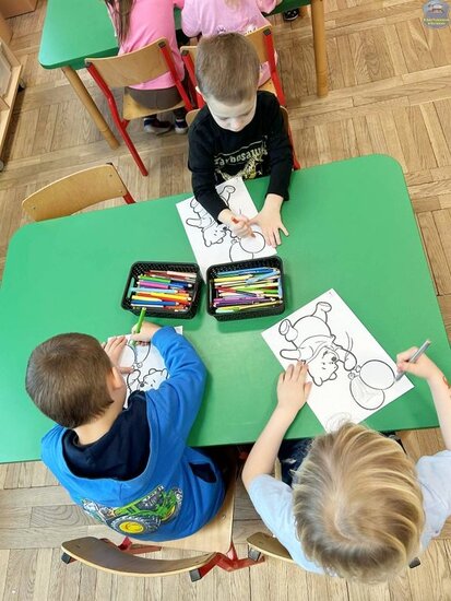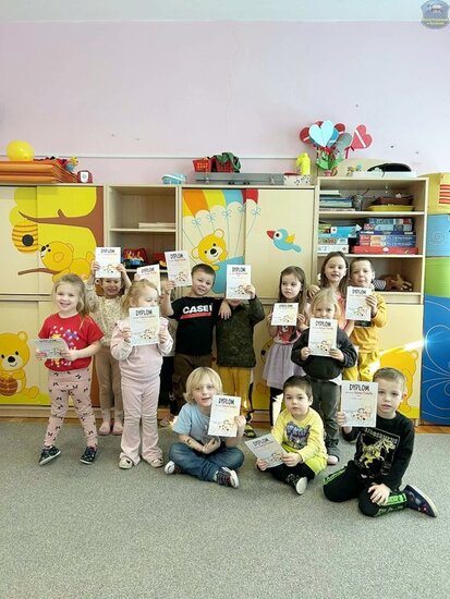 Wiele uśmiechu wywołała gimnastyka inspirowana postacią Tygryska — pełna skoków, śmiechu i energii. Na zakończenie dnia dzieci wykonały prace plastyczne, a każdy przedszkolak otrzymał dyplom Przyjaciela Kubusia Puchatka, który był miłą pamiątką z tego wyjątkowego dnia.