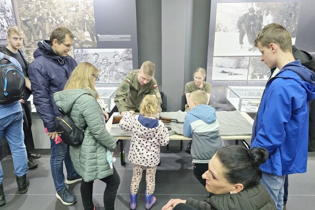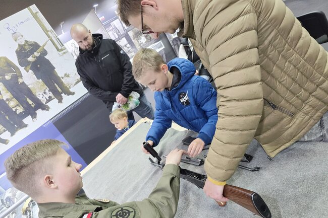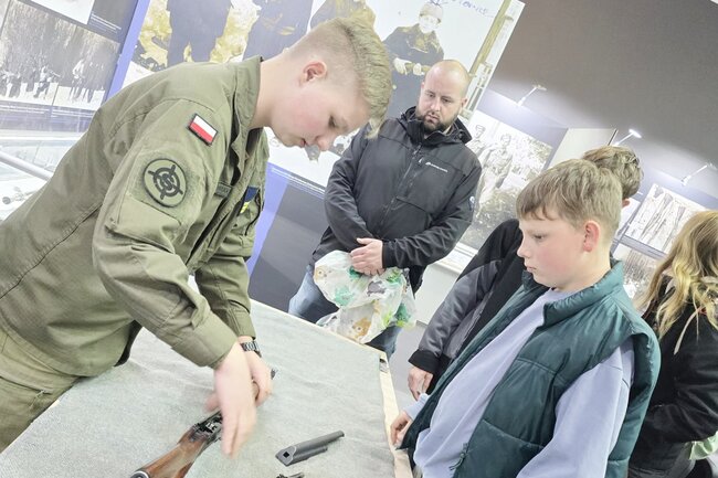Pokaz rozkładania i składania broni – kadeci prezentowali broń szkoleniową oraz instruowali zwiedzających, jak bezpiecznie i sprawnie ją rozłożyć i złożyć. Każdy zainteresowany mógł samodzielnie przećwiczyć nową umiejętność. Marek Jaśkowiak i Julia Maras chętnie prowadzili pokaz oraz udzielali instrukcji używając fachowego nazewnictwa.