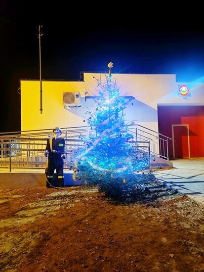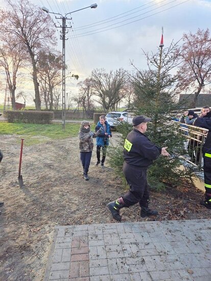 Do Mariki. Ta choinka to nie zasługa burmistrza. Pomysłodawcą tej imprezy był naczelnik jednostki OSP Dobieszewo Pan Piotr.
