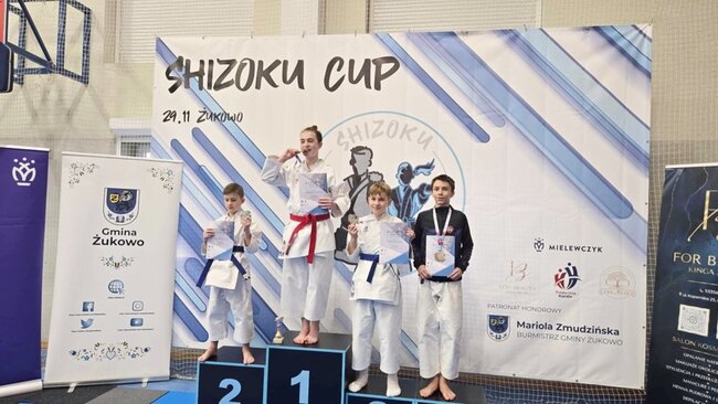 Dwóch zawodników# Klubu Karate Stowarzyszenie Sportowe Yamabushi - Mateusz Ostrowski i Jan Kalinowski - zdobywa 7 medali (3 złote, 2 srebrne, 2 brązowe) podczas SHIZOKU CUP, Liga Super Karate, które się w dniu 29 listopada 2025 r. w Żukowie