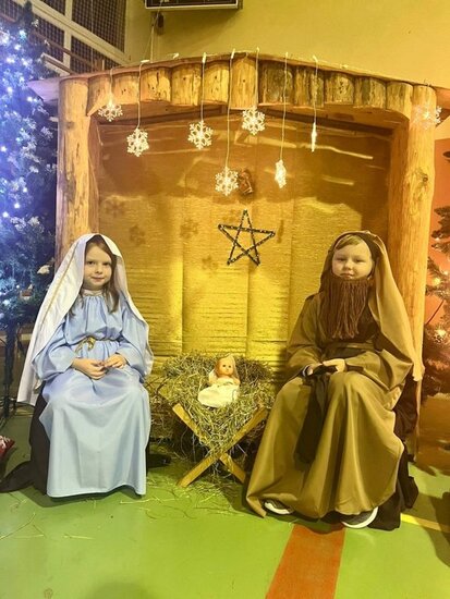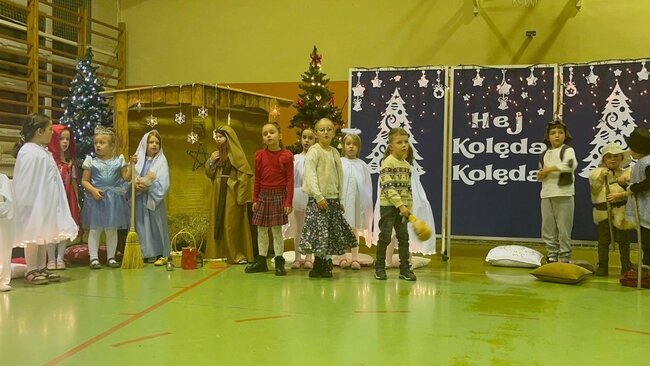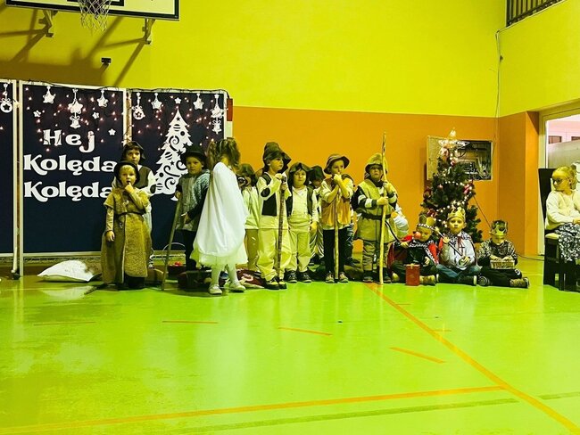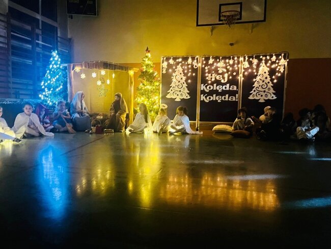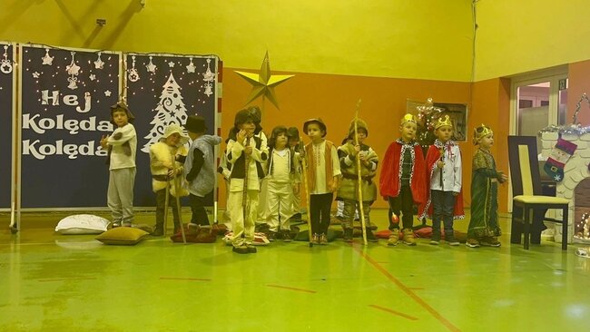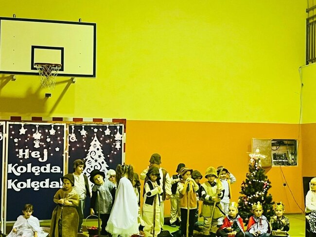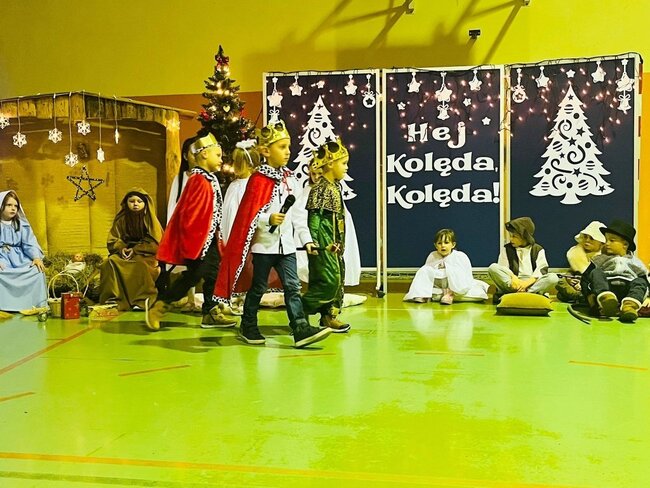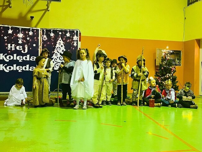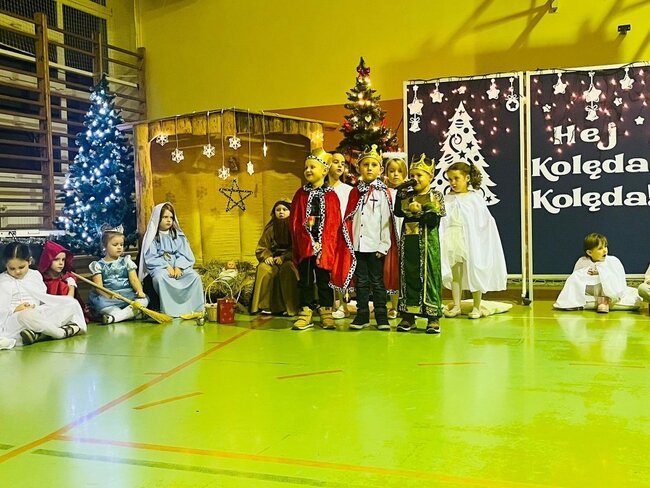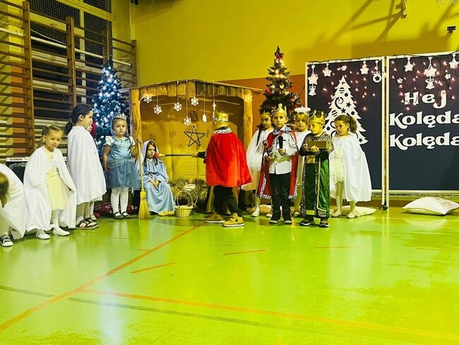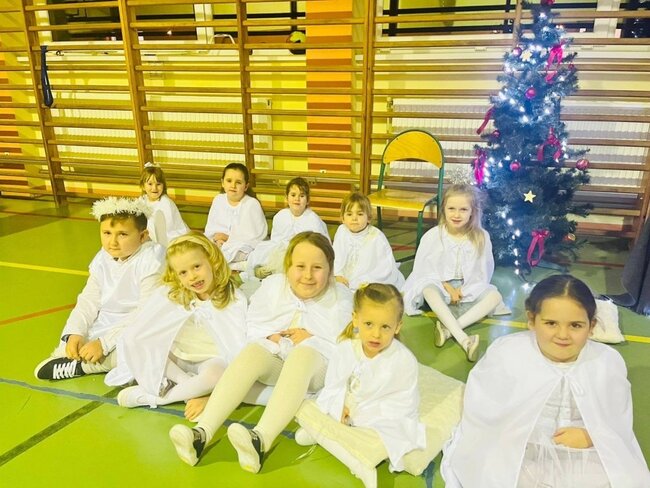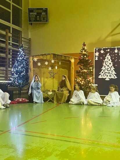 Kolejnym punktem programu był urokliwy występ oddziałów przedszkolnych, które zaprezentowały piękne jasełka. Mali artyści zachwycili publiczność, a taniec aniołków skradł serca wszystkich obecnych, wprowadzając prawdziwie świąteczny nastrój. Ogromne podziękowania kierujemy w stronę Pani Katarzyny Morzyńskiej, Pani Renaty Murawskiej i Pani Jagody Furtak za wspaniałe przygotowanie naszych najmłodszych artystów.