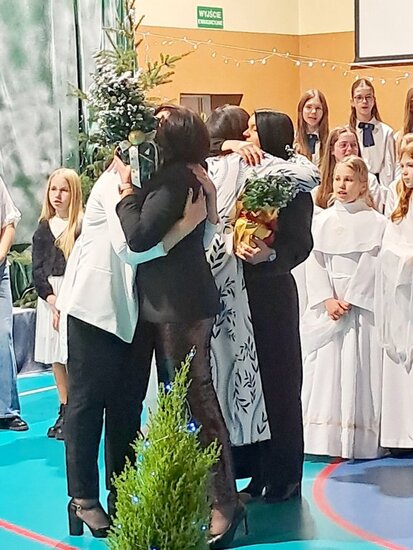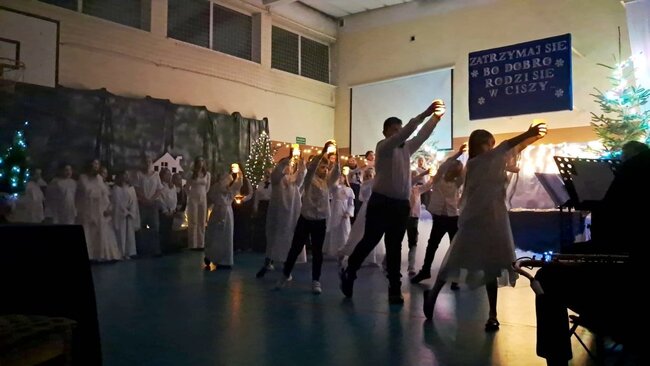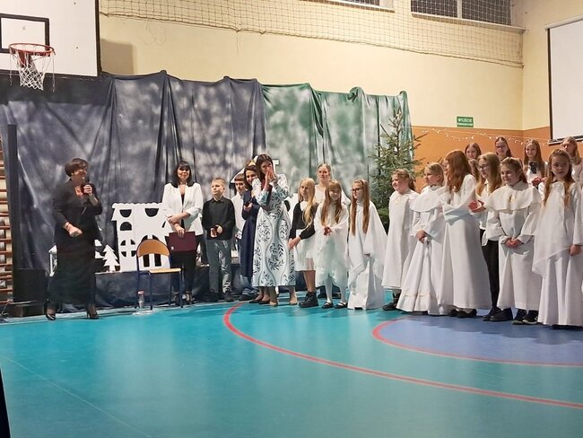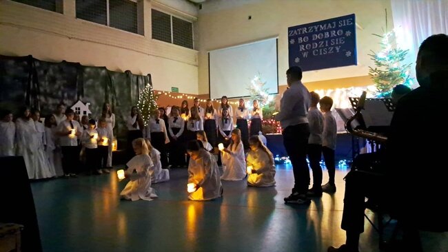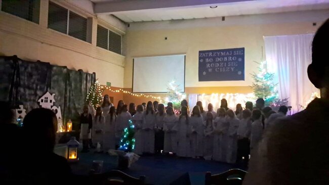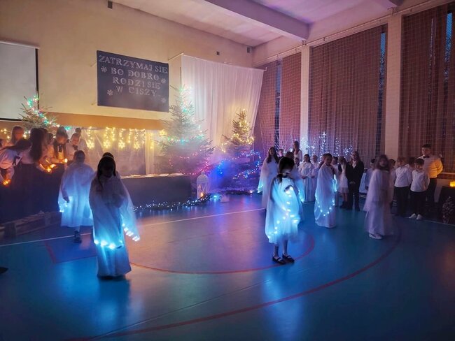 Tegoroczne spotkanie zostało połączone z wyjątkowym występem artystycznym uczniów klas 3a oraz 6a, a całość wypełniły wzruszające chwile wspólnego świętowania. Na szkolnej scenie zaprezentował się również chór szkolny, który wprowadził wszystkich w świąteczny nastrój. Uczniowie, przygotowani przez Panią Katarzynę Soja, Panią Katarzynę Kaźmierczak oraz Panią Dobromiłę Siewkowską, przedstawili program artystyczny składający się z recytacji wierszy oraz dwóch przepięknych układów tanecznych. Ich zaangażowanie i radość sprawiły, że był to prawdziwie magiczny czas.Wśród zaproszonych gości obecni byli Burmistrz Kcyni, Pan Mateusz Stachowiak, Dyrektor szkoły Pani Aleksandra Doiczman, Wicedyrektor Pani Natalia Żychlińska-Nowakowska. Na zakończenie uroczystości goście otrzymali świąteczne upominki – aniołki z serdecznymi życzeniami.